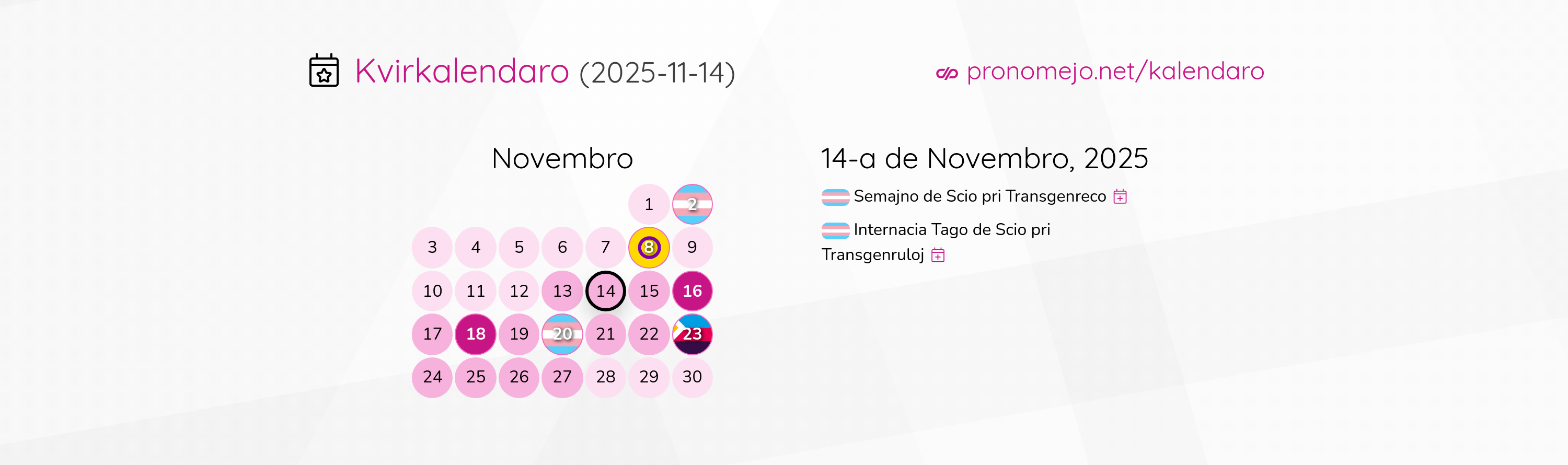 Alternativa teksto: A rectangular flag with five equal-width horizontal stripes: blue, pink, white, pink, blue Internacia Tago de Scio pri Transgenruloj